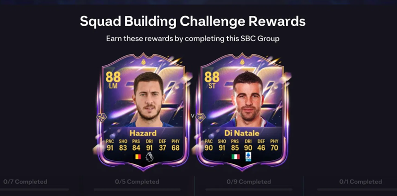 UT Hero Eden Hazard (1988 Left Winger/Left Wing) or UT Hero Antonio Di Natale (1988 Forward/Left Wing) will be chosen from a one-time challenge in the Basic Hero Matchday Selection SBC. Both hero cards boast top-tier attacking abilities and excellent chemistry options, making the SBC one of the most attractive upgrades early in the Ultimate Team lineup. This SBC requires completing nine different lineup stages and lasts 21 days.